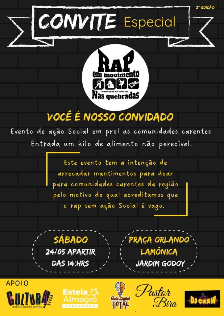 O RAP em Movimento Nas Quebradas convida você para um evento de ação social em prol das comunidades carentes!